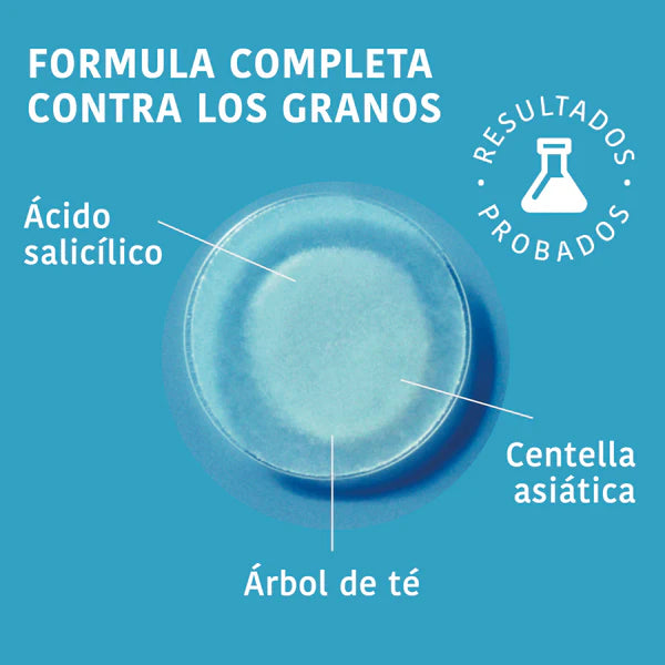 ÁCIDO SALICÍLICO: un potente activo antiinflamatorio y antibacteriano que ayuda a regular el sebo, reducir la inflamación y el enrojecimiento y hacer que los granos cicatricen y desaparezcan más rápidamente.