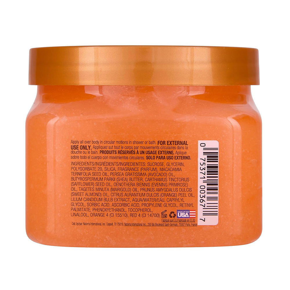 Sacarosa, glicerina, polisorbato 20, sílice, fragancia (perfume), aceite de semilla de macadamia ternifolia, aceite de persea gratissima (aguacate), manteca de butyrospermum parkii (karité), aceite de semilla de carthamus tinctorius (cártamo), aceite de oenothera biennis (onagra), aceite de tagetes minuta (caléndula), prunus amygdalus dulcis Aceite (almendra dulce), aceite de cáscara de Citrus Aurantium Dulcis (naranja), extracto de bulbo de Lilium Candidum, agua/agua/agua, caprililglicol, ácido sórbico, ácido ascórbico, propilenglicol, palmitato de retinilo, fenoxietanol, tocoferol, linalol, naranja 4 (Ci 15510), rojo 4 (Ci 14700).