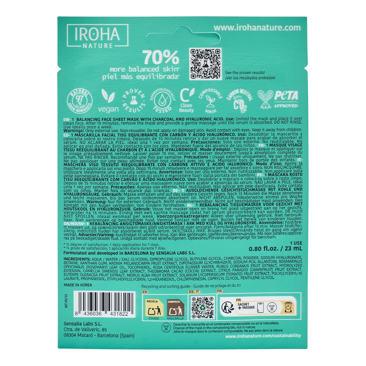 Mascarilla facial enriquecida con Carbón Activo Purificante que limpia profundamente la piel, elimina las impurezas y toxinas y regula el exceso de grasa y sebo. Además, esta mascarilla tisú contiene té verde conocido por sus propiedades antibacterianas y antiinflamatorias que ayuda a combatir las imperfecciones y reduce la inflamación. Por último, el ácido hialurónico se encarga de aportar una hidratación y suavidad instantánea.