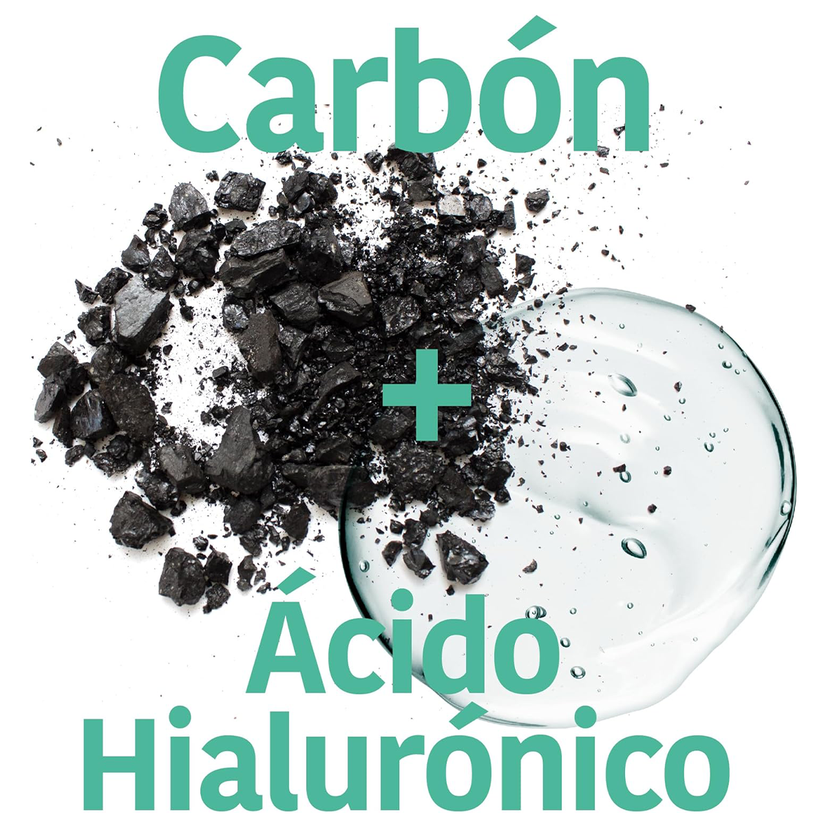 CARBÓN ACTIVO PURIFICANTE: Absorbe las toxinas acumuladas en la piel y el exceso de grasa, reduciendo el tamaño de los poros, las imperfecciones y puntos negros.