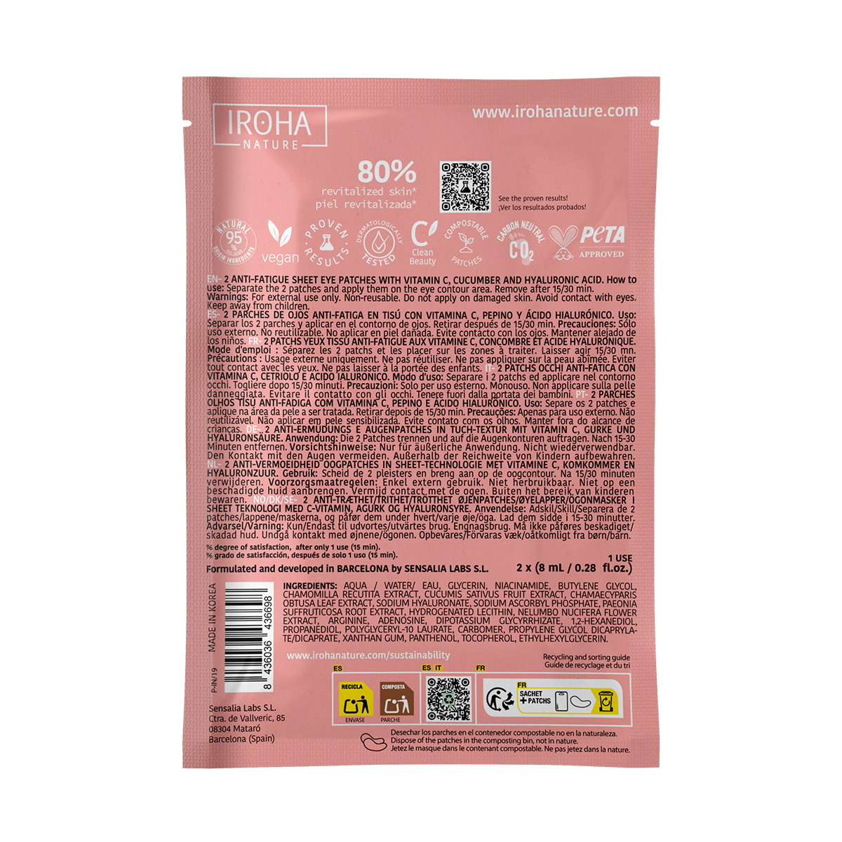 Dale un nuevo brillo a tu mirada con los Parches Ojos Antifatiga con Vitamina C. Su innovadora fórmula ayuda a reducir visiblemente ojeras y bolsas, iluminando el contorno de los ojos y proporcionando un efecto refrescante y revitalizante.